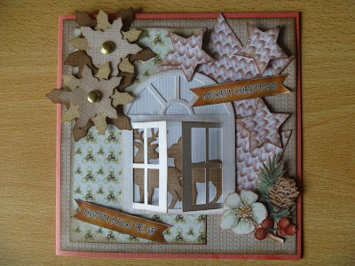 De voorbeelden staan ook in het blad met de beschrijving en zo heb ik de scrapkaart wel gemaakt maar de borduurkaart en de hobbydotskaart heb ik op mijn eigen manier ingevuld, nl hiervan heb ik een kerstkaart gemaakt.